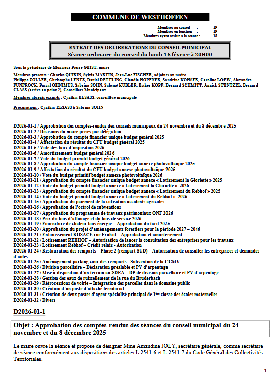 Le compte-rendu du conseil municipal (séance du 16 février 2026) est désormais disponible en ligne. Pour le consulter directement, cliquez sur l’image ci-dessous. Pour rappel, l’ensemble des comptes-rendus du conseil sont disponibles ici