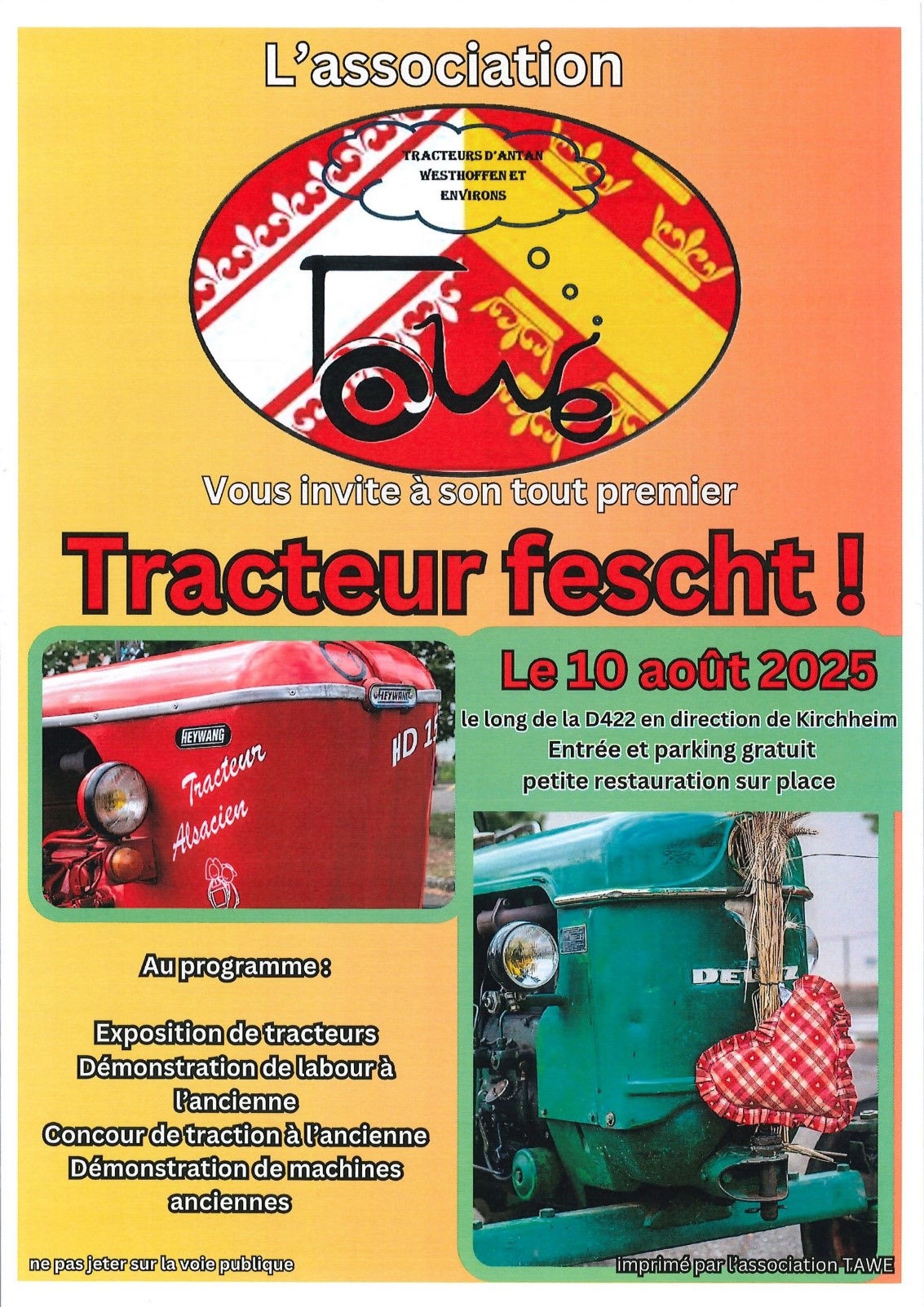 L’association Tracteurs d’Antan Westhoffen et Environs vous invite à son tout premier Tracteur fescht le 10 aout 2025 !